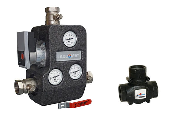 Należy podłączyć urządzenie poprzez LADDOMAT 22 lub zawór termoregulacyjny (zawór trójdrogowy z termostatem), aby uzyskać minimalną temperaturę wody powrotnej na poziomie 65°C.