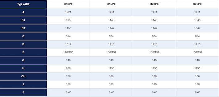 Kotły D10PX, D15PX, D20PX i D25PX dostarczane są w komplecie z palnikiem A25,