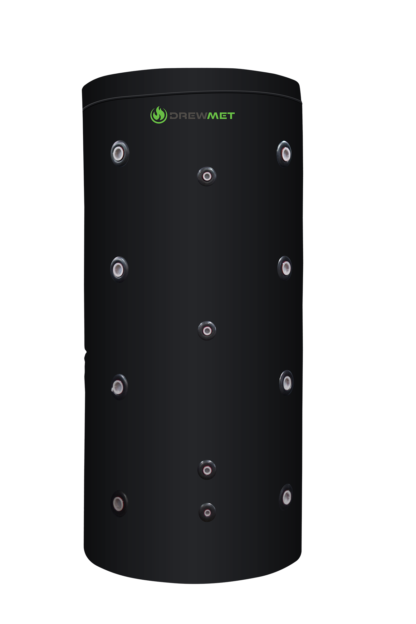 Zbiornik buforowy Drew-Met DM jest wykonany z blachy stalowej i malowany od zewnątrz farbą podkładową. Przeznaczony jest do pracy wyłącznie w pozycji pionowej. Zastosowanie izolacji termicznej ze styropianu i wełny syntetycznej o grubości 80 mm zapewnia klasę ocieplenia C.