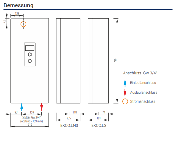 - króćce przyłączeniowe kotła G 3/4” (gwint wew.)