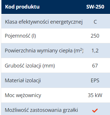 KOSPEL SW-250 Termo Max wymiennik c.w.u z wężownicą spiralną