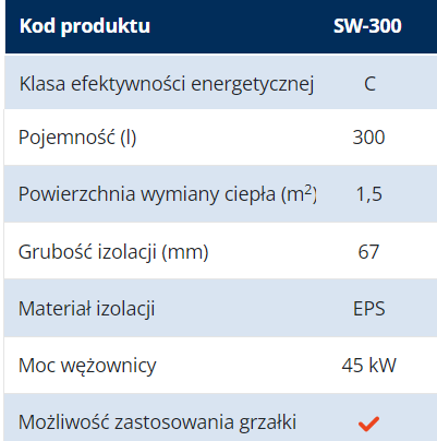 Wymiennik c.w.u. Kospel SW-300 z wężownicą spiralną. Idealny do ogrzewania wody przy współpracy z kotłem c.o.