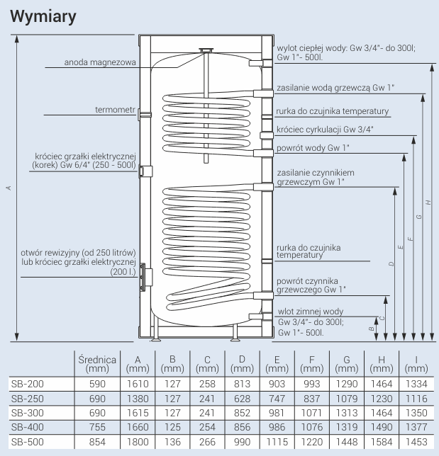 Wymienniki z dwiema wężownicami do dwóch źródeł ciepła. SB-400